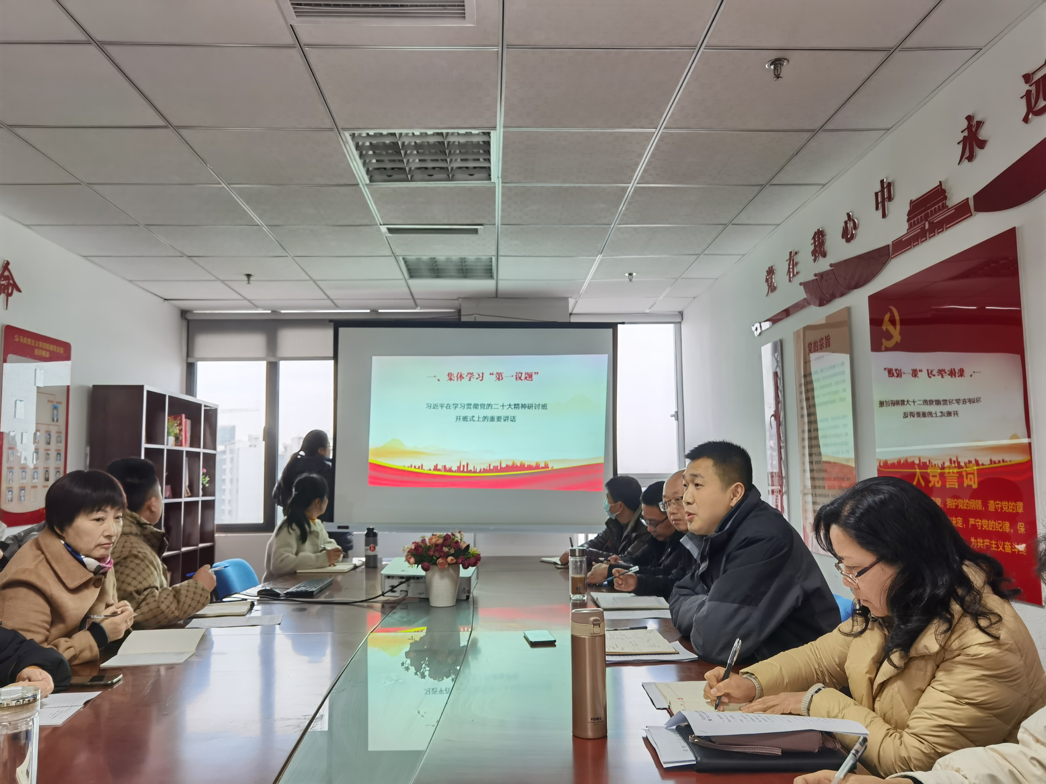 会上,全体教职工开展了“第一议题”学习,由张雪领学了《习近平在学习贯彻党的二十大精神研讨班开班式上的重要讲话》。